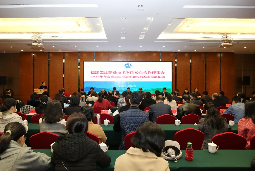 12月20日上午,我校在闽江饭店召开校企合作理事会2019年年会暨卫生健康职业教育改革发展论坛。福建省卫生健康委员会规划发展与信息化处处长洪涛、南平市扶贫开发协会会长柳贵清、校党委书记曾武祈、校长苏友新,南平、宁德市教育局、卫健委的有关负责人,校企合作理事会单位、省外兄弟合作院校的领导以及我校党政领导班子其他成员、骨干教师代表共计200多人参加了会议。副校长郑翠红主持大会。