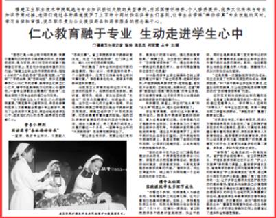 今年,我校《给花看病,药学系学生试办植物医馆》《仁心教育融于专业,生动走进学生心中》两则新闻获得福建日报报道。据了解,我校药学系学生在校内开起我省首家植物医馆,当起了“植物医生”,为当地群众送来的植物进行现场治疗服务,以前药学专业学生一般毕业后多数成为药店药师、炮制师、调剂师等,现在企业对中药材种植病虫害防治方面人才需求也在不断增大,学生通过依托学校创业基地提升自己专业能力,将为今后职业发展拓宽空间。