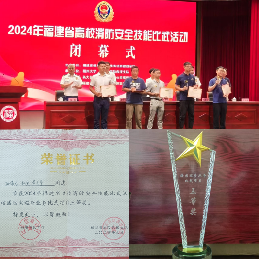 本次活动由福州大学和福州市消防救援支队承办,共有来自全省省部属高校的31支代表队155名参赛选手参加了消防防火巡查业务比武以及单人、团体灭火救援实操比武等竞赛科目。经过两天激烈比赛,我校代表队荣获校园防火巡查业务比武三等奖。