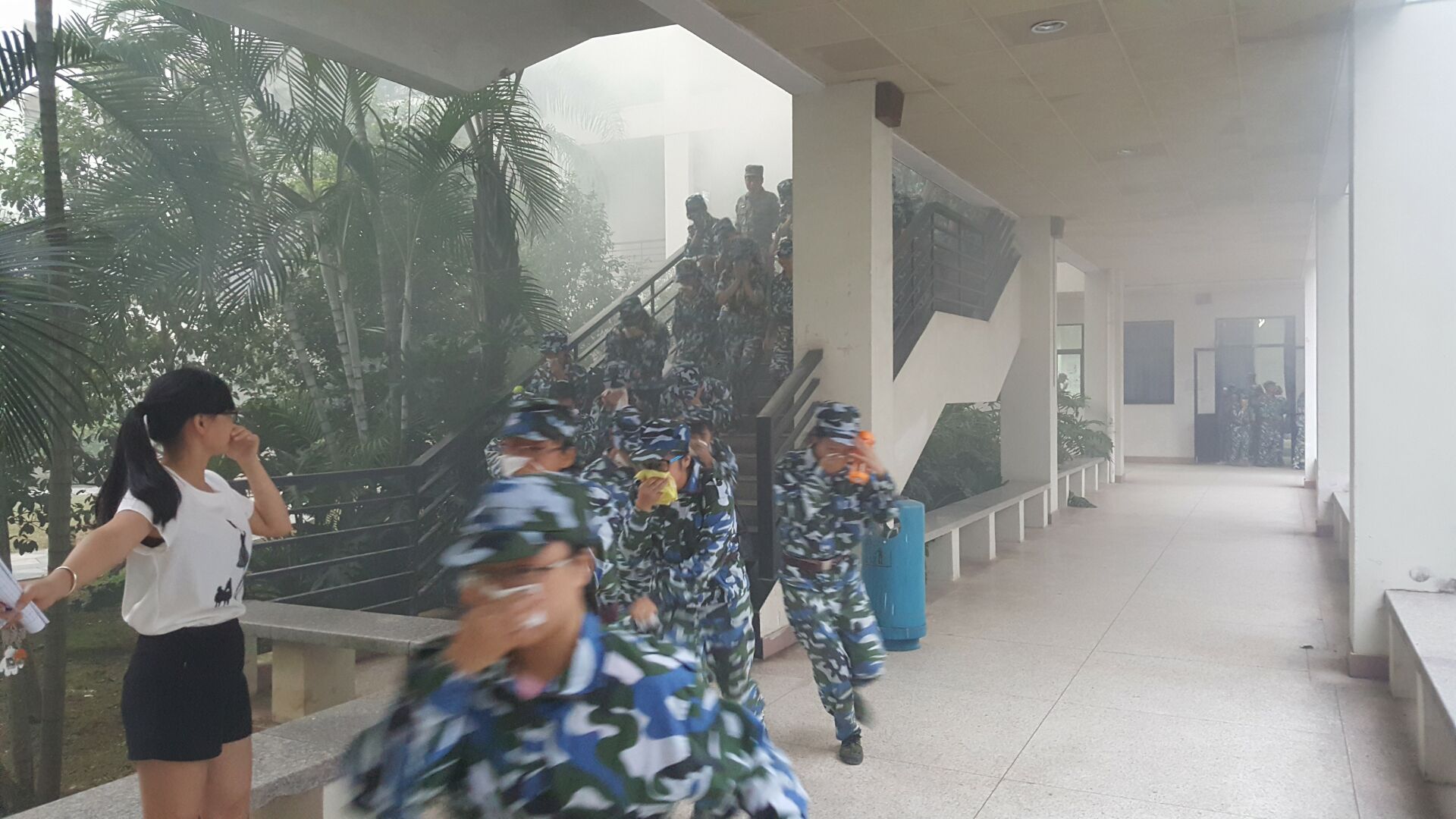 10月16日下午4时20分,保卫处联合学生工作处、后勤管理处、73919部队在教学楼举行2016级新生地震(消防)应急疏散演练。通过真实模拟火灾现场,演练《地震(消防)应急逃生预案》,警报声响后,辅导员第一时间到位组织人员疏散,医务人员赶赴现场开展应急救援。全体新生按照设定的疏散线路有序匍匐逃生,待最后一名学生“逃离火场”演练共耗时1分51秒,未发生意外事故。 通过此次演练,增强了2016级新生防灾意识和在遇到地震(消防)时逃生、自救能力,完善学院疏散、逃生、自救的组织体系,通过本次演练,查找不足、积累经验,进一步提高学院应对突发事件的快速反应能力。