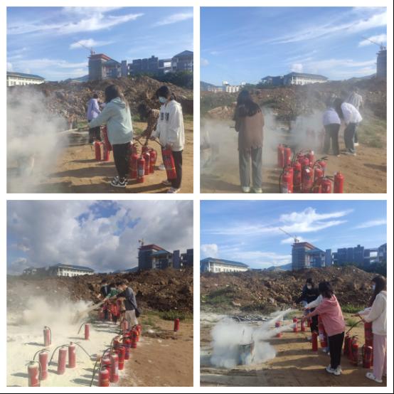 为提高2022级新生的消防安全意识和应急技能,初步掌握干粉灭火器的使用方法和扑灭初火的实用技能。11月26日,由安全工作处牵头,组织2022级全体新生、新入职教职工、实验员在实训楼西侧空地举行油盆灭火演练。