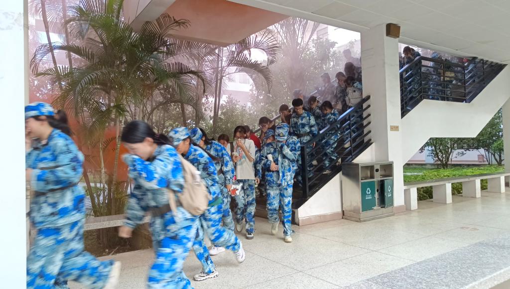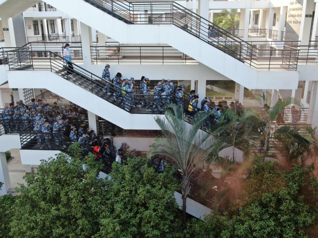 为强化我院2023级新生安全防范意识,提升面对火灾、地震等突发灾害事故时的应急处置和自救互救能力,安全工作处于2023年9月24日组织2023级全体新生开展教学楼消防、地震逃生演练,分三个场次进行。