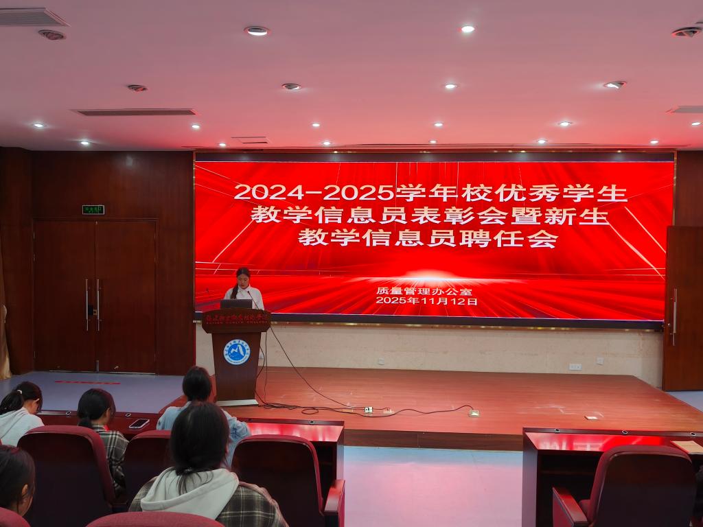 为健全教学质量反馈机制,充分发挥学生教学信息员的桥梁作用,我校近日召开2024-2025学年优秀学生教学信息员表彰会暨2025-2026学年学生教学信息员聘任会。学生教学信息中心主任林培英主持会议,质量管理办公室副主任李燕平讲话,全体学生教学信息员参会。