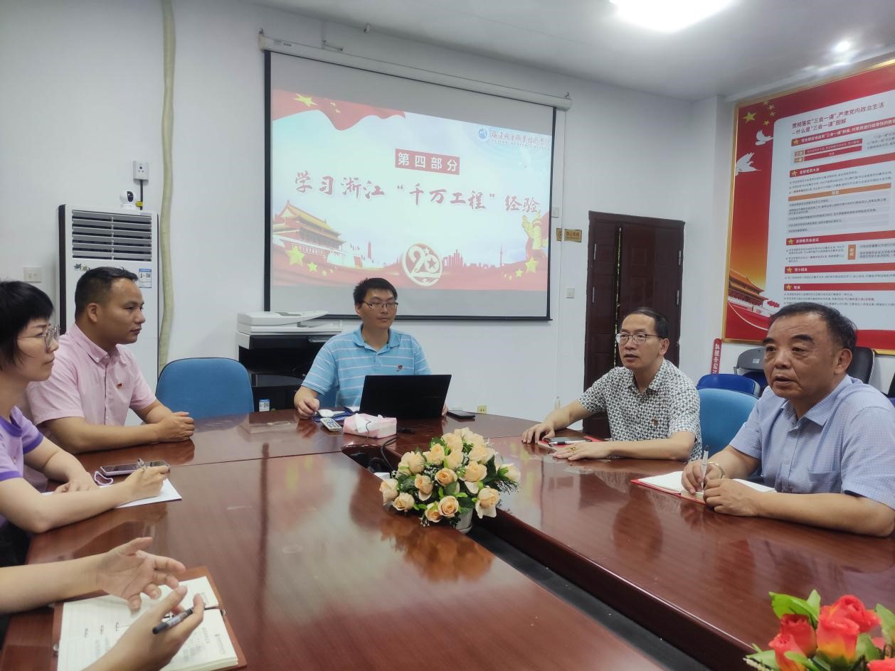 首先,医学技术系第二教师党支部钟伟雄书记从最新文件精神、四位一体工程,医路同芯育英才,学习浙江“千万工程”经验四个部分,结合职业教育产教融合赋能提升行动实施方案,探讨产业需求更好融入人才培养全过程,逐步形成教育和产业统筹融合、良性互动的发展格局。同时,还共同学习了浙江“千万工程”经验。