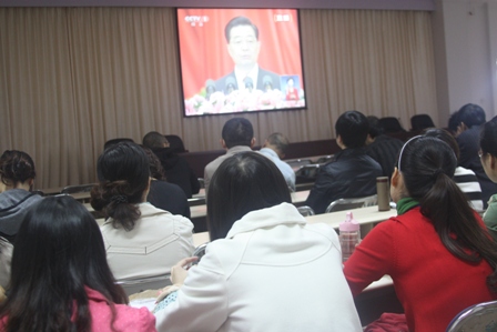 11月8日上午9点,万众瞩目的中国共产党第十八次全国代表大会开幕式在北京人民大会堂隆重举行。我院在行政楼六层会议室组织集中收看现场直播,院党委副书记、院长林春明等多位在家院领导和70余位行政管理人员专心致志地聆听了胡锦涛总书记的报告。