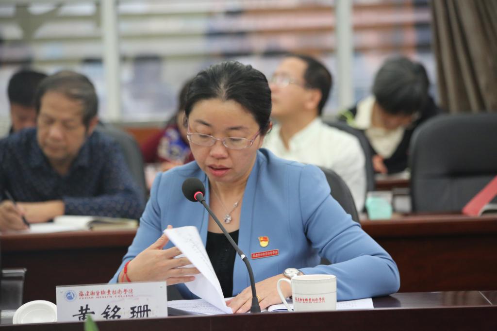 黄铭珊围绕“推进继续教育培训体系建设”,以需求为导向,以问题为抓手,着眼解决实际困难,提出了强化政策宣传、丰富激励形式、着力平台建设等七个措施健全完善我校继续教育体系,以及拟建校园快递服务中心、出台教职工外出培训相关管理规定等接地气、具有较强操作性的意见和对策。