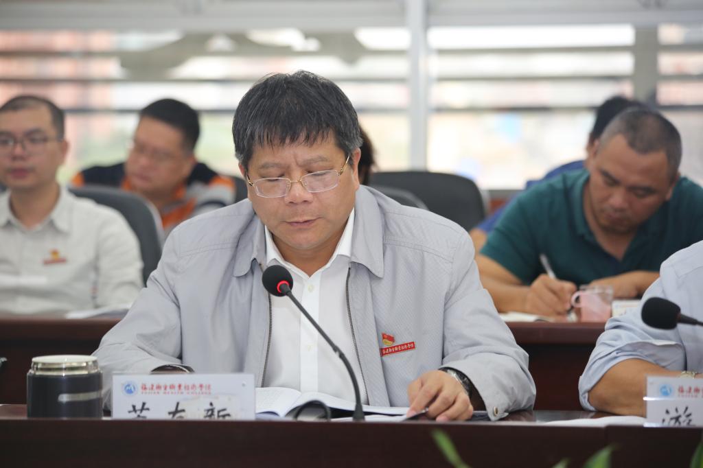 10月31日下午,我校召开“不忘初心、牢记使命”主题教育校领导班子调研成果交流会,交流调研情况,进一步检视问题,明确整改思路。省委教育工委第二巡回指导组成员省文化稽查总队副调研员笪章彪同志、省委教育工委思政处主任科员林曦现场听取了汇报。校党委书记曾武祈,校党委副书记、校长苏友新,校党委副书记李美华,校党委纪委书记游锋,副校长陈贞健,副校长黄铭珊围绕调研主题,先后作调研交流发言。副校长郑翠红提交了书面调研交流材料。曾武祈主持会议。