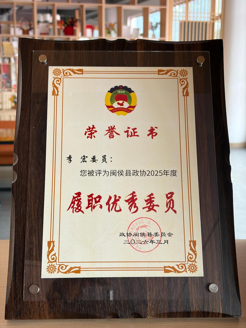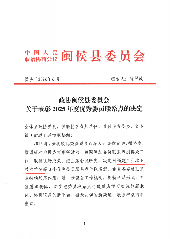 近日,政协闽侯县委员会发布表彰,我校闽侯县政协委员联系点获评2025年度优秀委员联系点、政协委员李宏获评2025年度履职优秀委员。