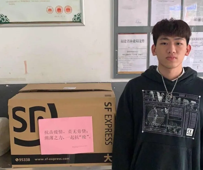 19检验304班的林杰同学够购买了1500个口罩寄回学校,送给老师和同学