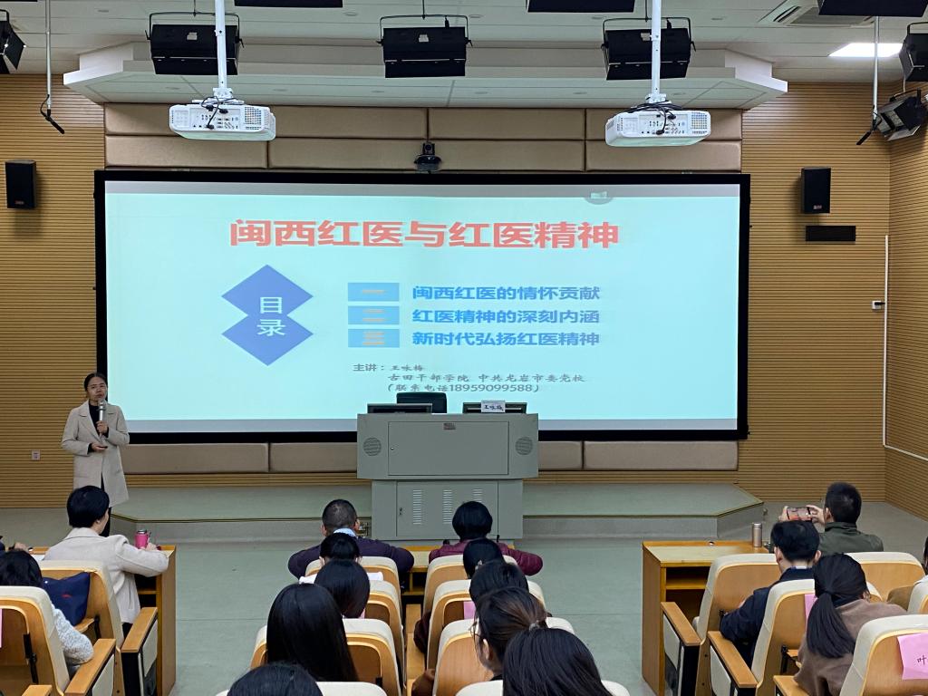 12月7日,我校邀请中共龙岩市委党校(古田干部学院)王咏梅副教授到校开展《闽西红医与红医精神》主题讲座。护理学院、医学系党员教师及积极分子代表、组织统战部党支部等60余人参与学习。