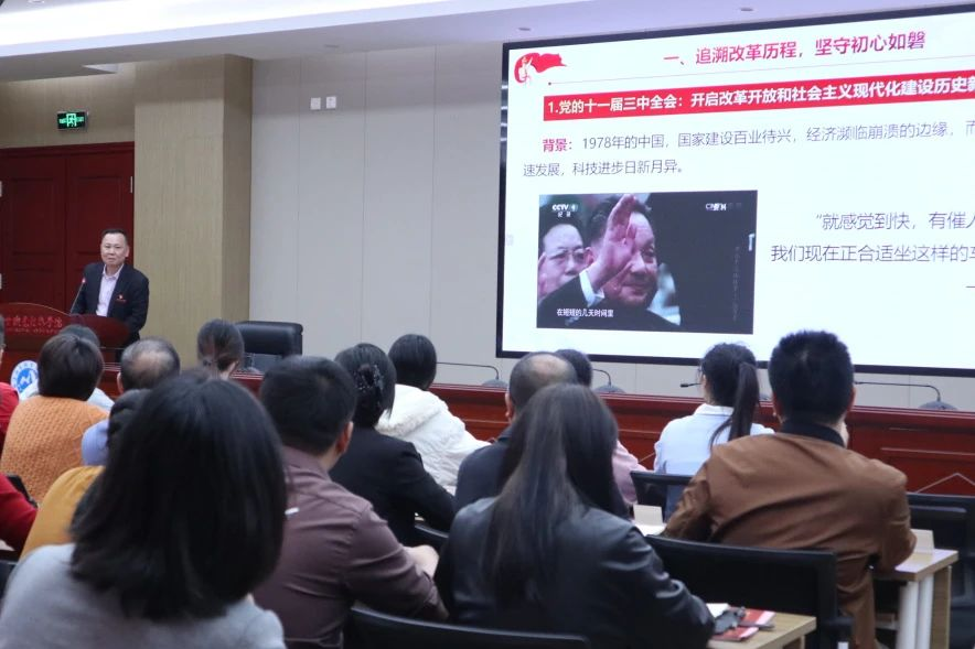 为进一步学习领会党的二十届三中全会精神的丰富内涵,结合学校工作实际贯彻落实相关工作要求,11月28日,校党委书记曾武祈为学校管理干部讲授党的二十届三中全会专题辅导课。