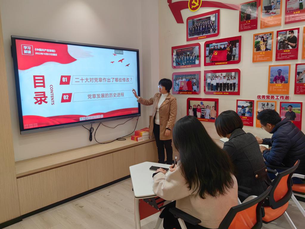 为深入学习宣传贯彻党的二十大精神,切实把党员的思想统一到党的二十大精神上来,12月1日,组织统战部党支部书记谢涛以专题党课的形式,带领支部党员共同学习《中国共产党章程(修正案)》。