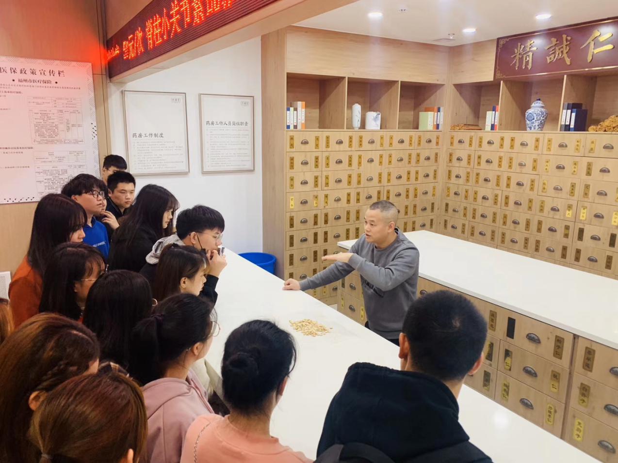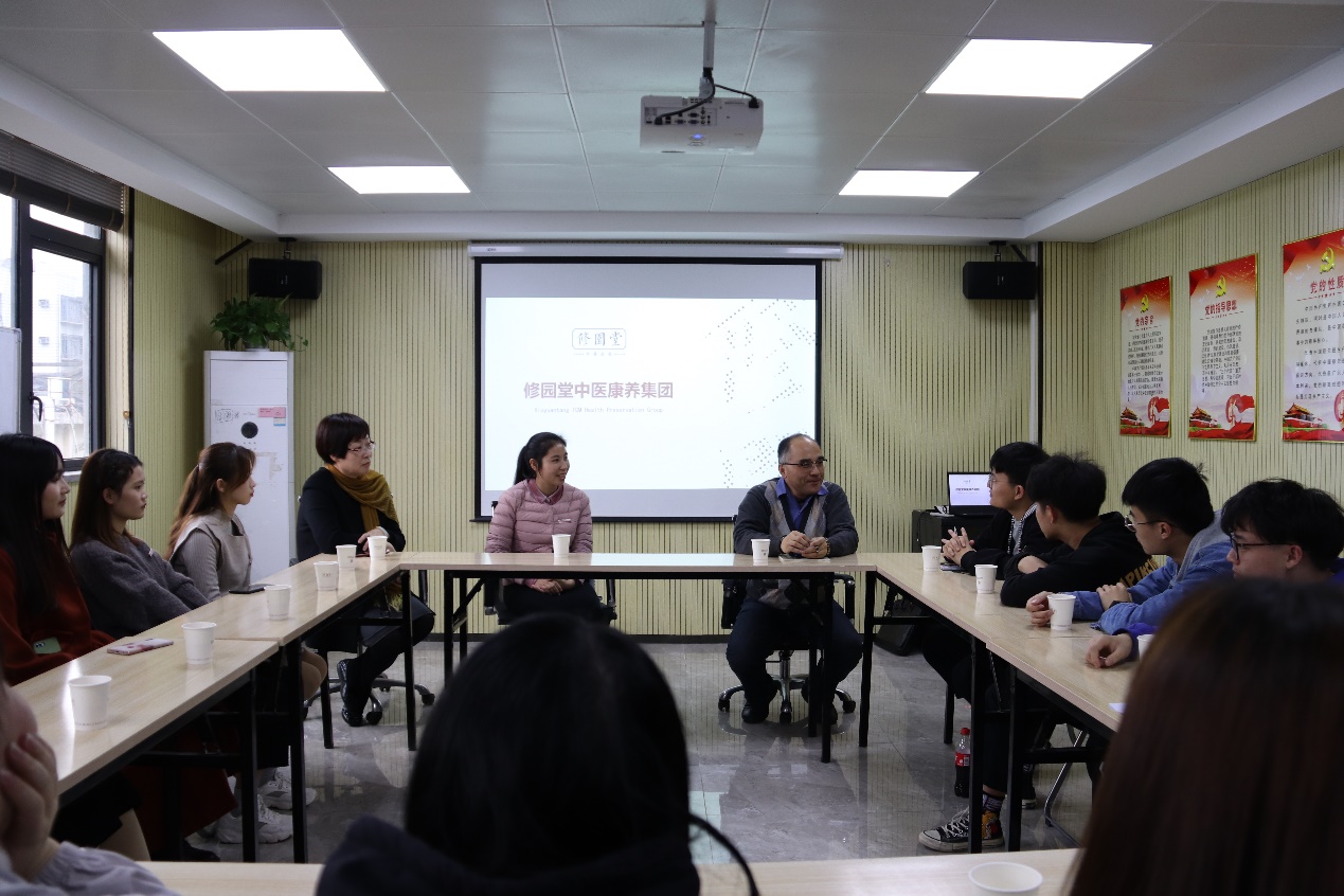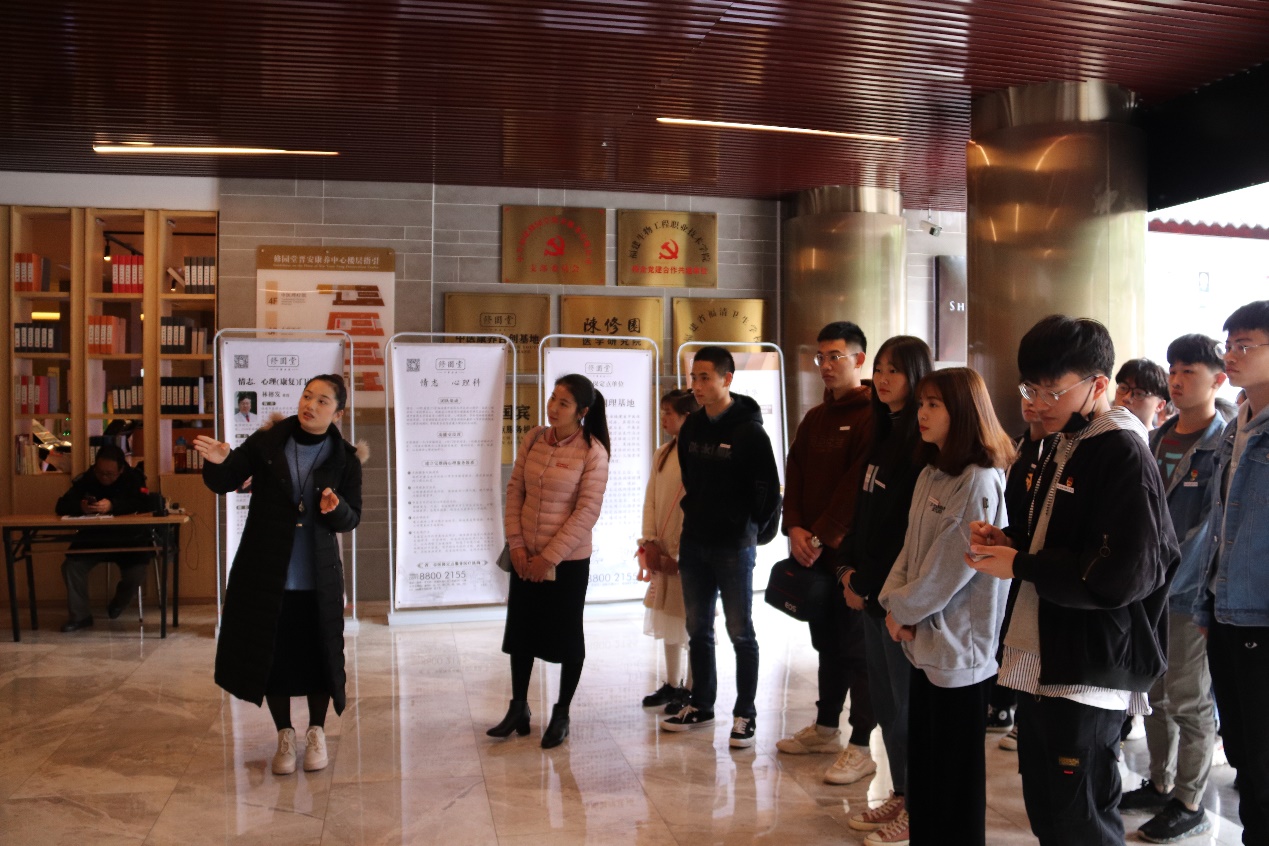 中医养生保健专业师生一行受到了修园堂中医康养集团的热烈欢迎,有关负责人介绍了修园堂中医康养的有关理念,讲解了“陈修园”的医德医风医术,先后参观了修园堂中医堂、杏林康养酒店、中医理疗馆、中医生活馆等。