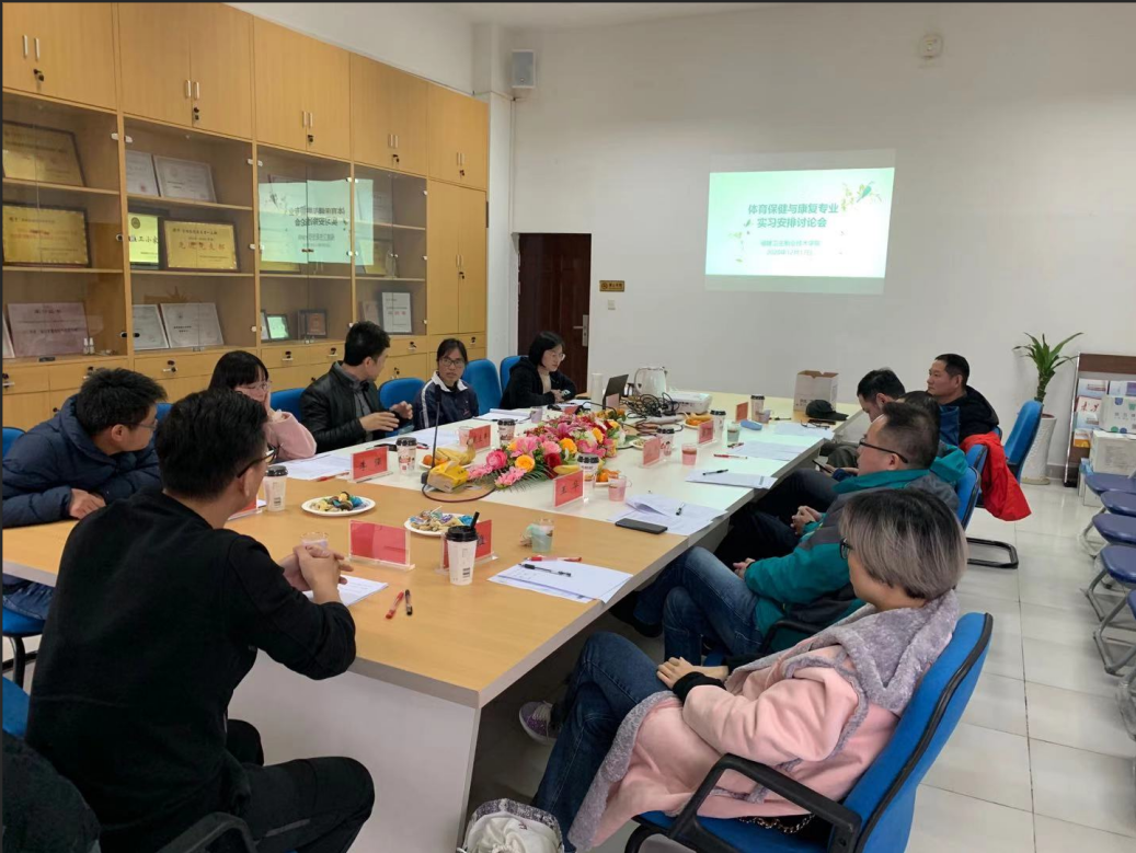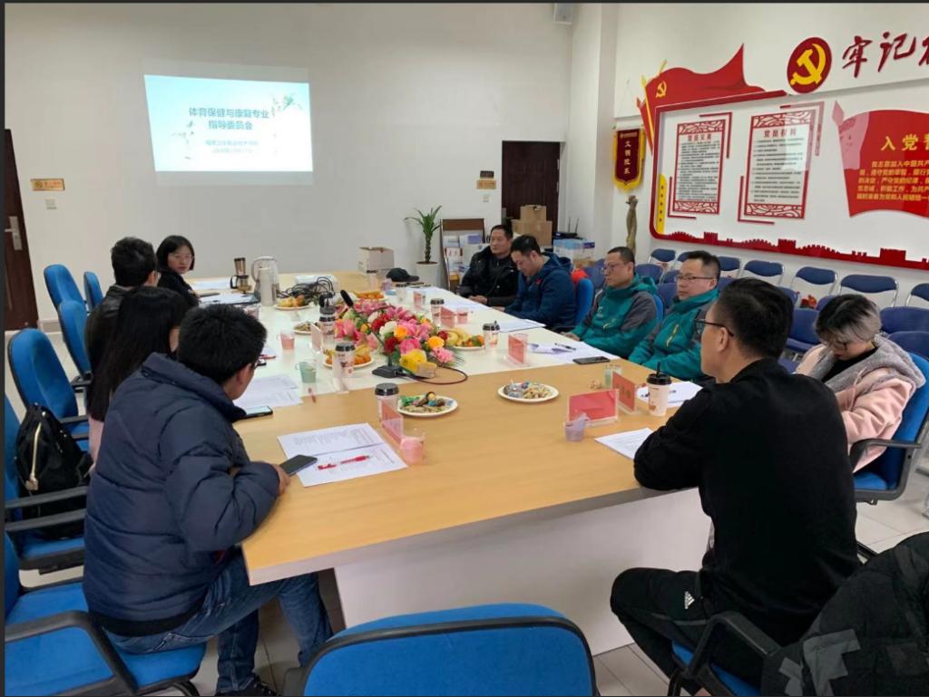 2020年12月17日下午,2020年体育保健与康复专业指导委员暨体育保健与康复专业实习安排讨论会在福建卫生职业技术学院健康管理系会议室召开。参会的专家有福建省篮排球运动管理中心副主任归予恒研究员,福州职业技术学院副教授、上海懒人易健科技有限公司董事长戴立平,福州市绿动体适能健康管理有限公司总经理黄聪,福州市仁馨医疗科技有限公司总经理沈平,福建茵斯柏健康管理有限公司总经理罗泽枝,福州常青融体育有限公司市场营销部总经理索菲雅、教务部总经理田始轩,福州协力闽健康复医疗有限公司黄晓月治疗师。福建卫生职业技术学院健康管理系主任庄海林、体育保健与康复专业带头人阮秋容教授、健康管理与体育保健教研室主任温晓黛及体育保健专业教师参加此次会议。