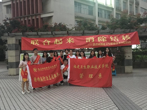 为促进和提高大学生结核病防治知识普及率,优化结核病控制支持环境,2017年10月19日,由共青团福建卫生职业技术学院委员会主办,管理系团总支和院红十字急救培训部共同承办的以结核病防治知识为宣传重点的“联合起来,消除结核”交流宣传活动在福建艺术职业学院正式举行。