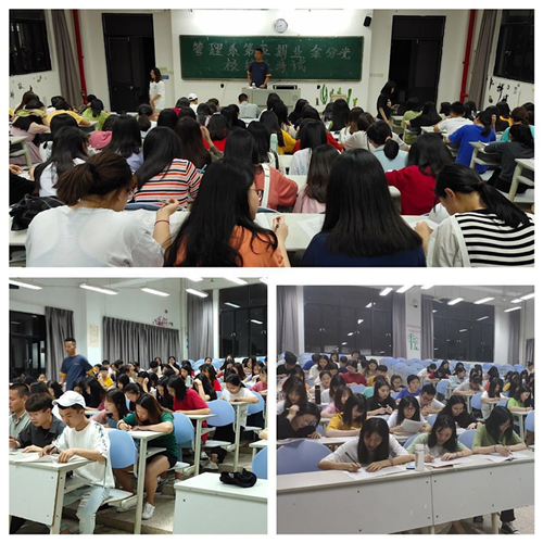 为深入学习贯彻党的十九大精神,加强分党校各学员对党的基本知识的掌握。2019年5月12日晚,管理系团总支组织156名分党校学员于教学楼109开展管理系第五期业余分党校培训班结业考试。