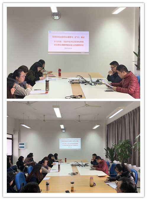 4月4日下午,管理系党总支召开中心组学习扩大会议,学习习近平总书记在学校思想政治理论课教师座谈会上的重要讲话,管理系全体教职工参加了会议,会议由管理系党总支书记艾松军主持。