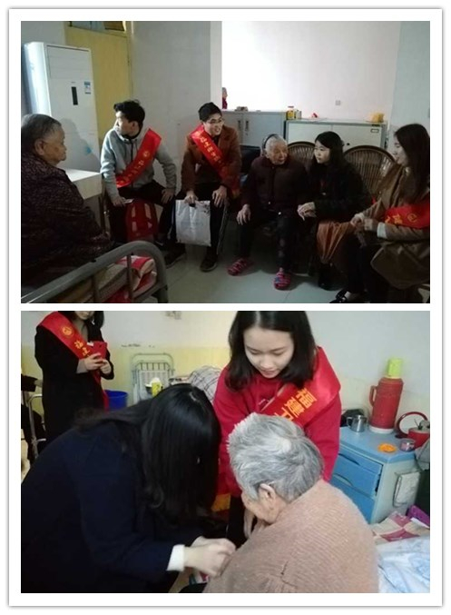 12月16日,17美容301班团支部和17预防302班团支部一同前往闽侯养老护理中心开展“弘扬孝亲敬老精神,共筑爱心之城”义工活动。