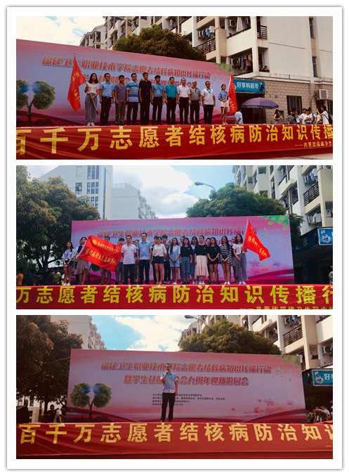 金秋十月,由共青团福建卫生职业技术学院委员会主办、临床医学系团总支、管理系团总支、学生社团联合会承办的志愿者结核病知识传播行动,于10月12日下午在明湖广场举行。院党委林建团副书记、院团委黄曦副书记、临床医学系洪聿荣书记、医学技术系邱滚忠书记、管理系庄海林副主任、管理系艾松军副书记等领导老师出席本次活动。此次活动以“联合起来,消除结核”为主题,普及结核病防治的知识要点,提升大学生的疾病防范意识。