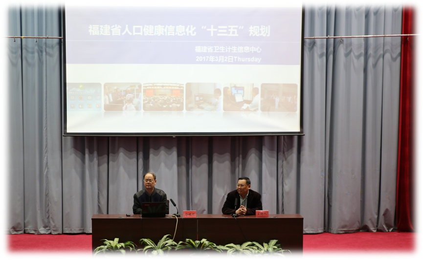 3月2日下午,省卫生计生信息中心俞建明主任莅临我院,在学院学术厅举办了《福建省人口健康信息化十三五规划》专题讲座。讲座由院党委书记曾武祈主持,省卫生计生委规划与信息处高洁研究员、学院院长苏友新等院领导、全体教职工及管理系卫生信息管理专业全体在校学生聆听了讲座。