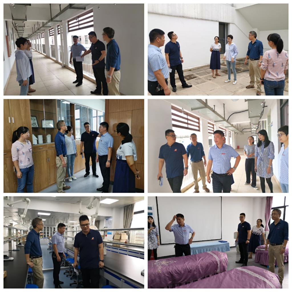艾松军书记、庄海林主任等人先后察看了预防医学、医学美容技术、卫生信息技术实训室,庄海林主任就实训室的安全管理、使用管理、实训效益等提出了相应的改进建议,要求实训室加强安全管理,保障师生人身安全和学校财产安全。此外,新实训室基本建设完成,请各教研室提高实训室的有效利用率。艾松军书记就实验室的制度管理,文化建设提出具体要求,要求实训室管理人员联合各教研室共商共讨,共同努力,将实训室打造成一个规范的、有序的、具有文化内涵的实训室,充分发挥其教学实践作用,为培养学生扎实专业技能打下良好的基础。