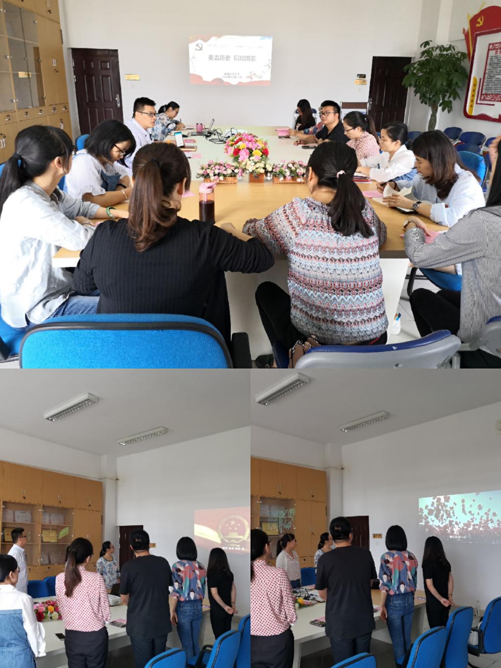 会上,艾松军书记介绍了国歌产生的历史背景和国歌创作的曲折过程,并带领大家一起重温了《义勇军进行曲》成为国歌所经历的法定历程,一起学习了《国歌法》。最后,伴随着庄严的旋律,全体党员一起引吭高歌,共同祝福伟大的祖国繁荣富强。