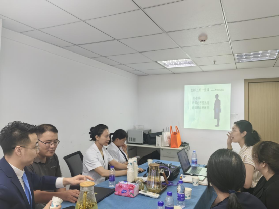 会后,医学美容技术专业教师吴若云给爱美尔医学美容教研室的老师们做《怎样上好一门课》的讲座,李宏教授也给老师们分享了如何备课等细节,现场交流氛围热烈,校企双方老师交流互动良好。