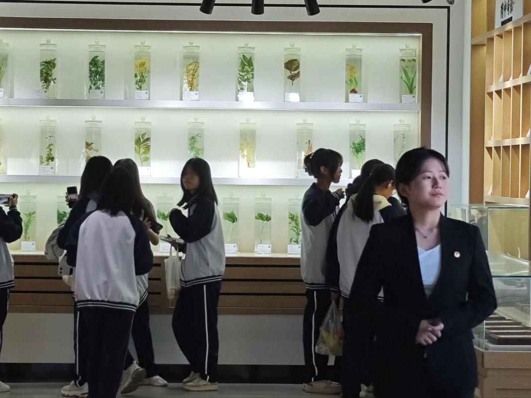 在中医药文化馆同学们在讲解员的带领下,开启了中医药文化探索之旅。从中药材标本展示到传统炮制工具陈列,从经络穴位图解读到经典方剂介绍,深厚的中医药文化底蕴让同学们驻足流连。讲解员结合实例生动讲述了中医药的起源发展、诊疗原理与养生智慧,让大家在感受传统文化魅力的同时,进一步增强了文化自信与民族自豪感。