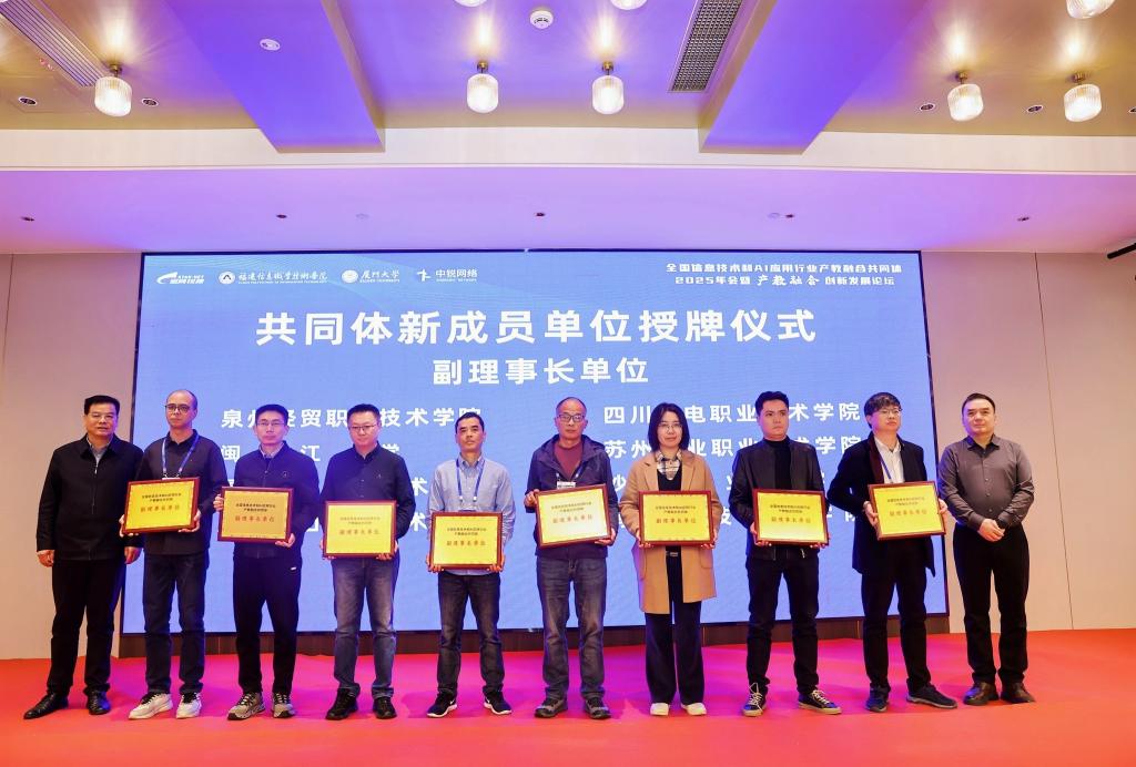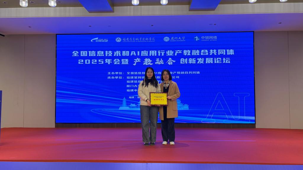 2026年1月19日,全国信息技术和AI应用行业产教融合共同体2025年会在福州举行。福建卫生职业技术学院健康大数据管理与服务专业作为新晋成员单位正式加入共同体,健康大数据管理与服务专业教师唐青、邹彤出席授牌仪式。