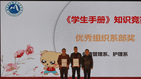 此外,我系在第三届易班《学生手册》知识竞赛中荣获“组织奖”,辅导员王开晔、张凯捷、李芳琴荣获“优秀组织者”称号,19健康管理301班荣获一等奖;19预防301班、19美容301班荣获二等奖;19预防302班、19健康管理302班荣获三等奖。