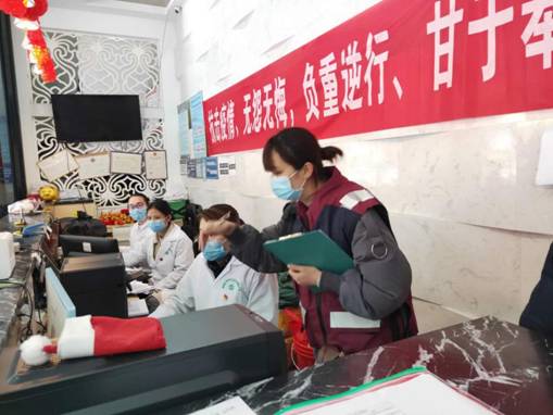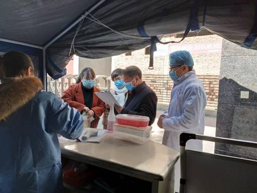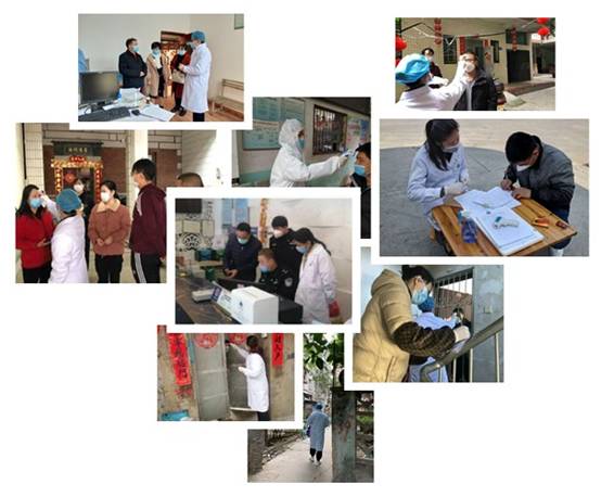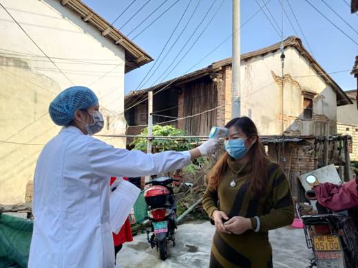 (图为:预防班周银华(左二)参与外来人员复工体温检测工作)