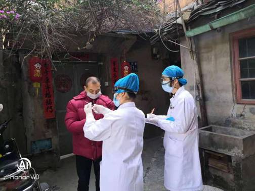 (图为:预防班林婷参与上门面访、测量体温工作)