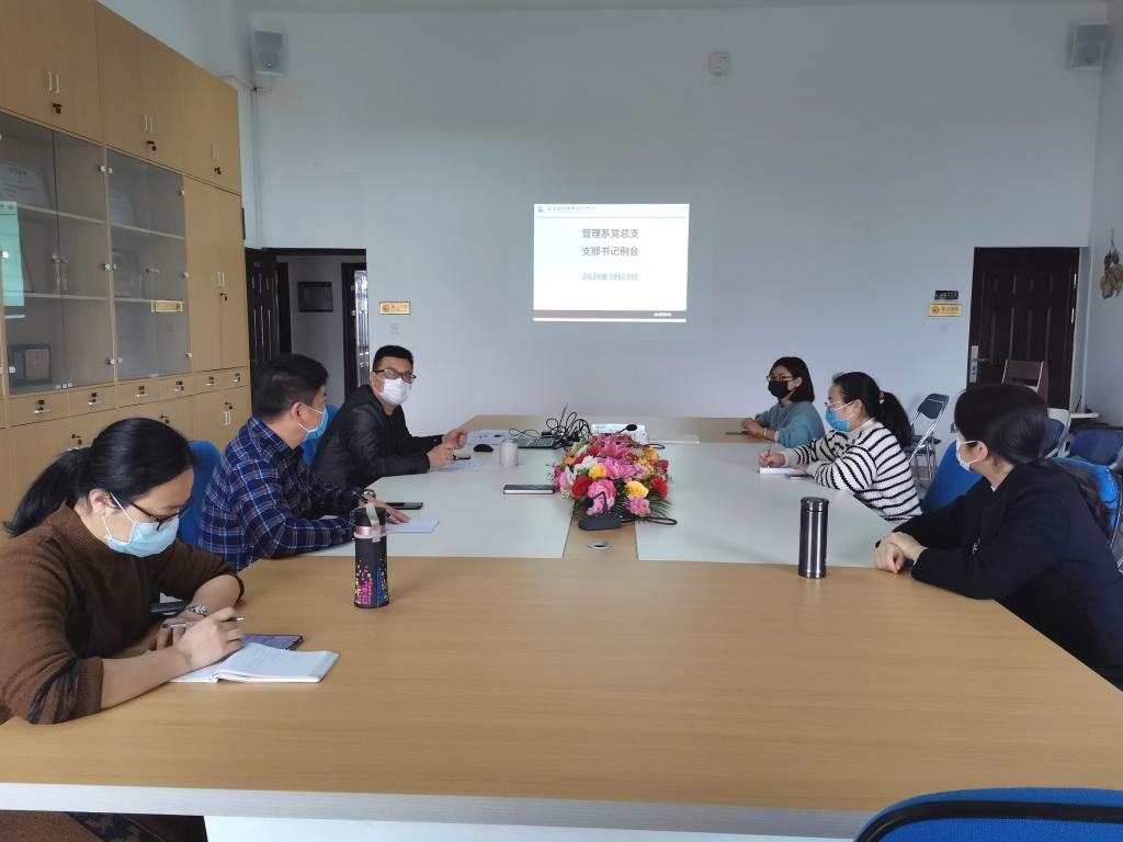 为进一步推动2020年各支部党建工作顺利开展,管理系党总支于2020年3月23日召开支部书记例会,会议由系党总书记艾松军主持。管理系党总支委员、各支部书记参加会议。