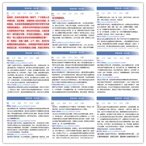 为认真学习在疫情阻击战中发挥积极作用的先进典型,深刻认识中国抗疫彰显的中国共产党领导和中国特色社会主义制度的显著优势,2020年3月31日,管理系第一党支部开展全体党员同上“全国大学生同上一堂疫情防控思政大课”主题党日活动,并积极发表观后感。
