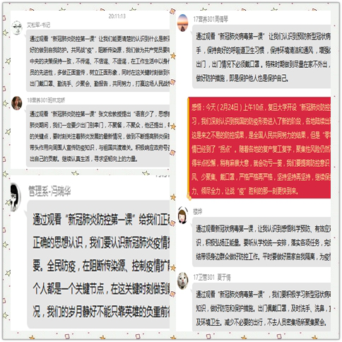 其他党员教师及学生党员也纷纷发表了自己的见解,表示现在处于疫情防控的关键时期,无论是宅在家还是后面的复学复工,我们仍然要绷紧“防疫”这根弦,保护好自己的健康,保护好家人的健康,为疫情防控做出自己的贡献。冬将尽,春可期,山河无恙,人间皆安。