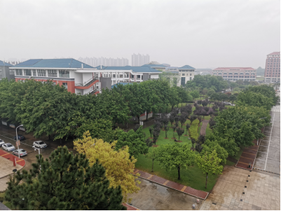 卫院新雨邑轻尘,校园青青柳色新。清新翠绿,蒙蒙细雨,仿佛都在为返岗的老师们接风洗尘。