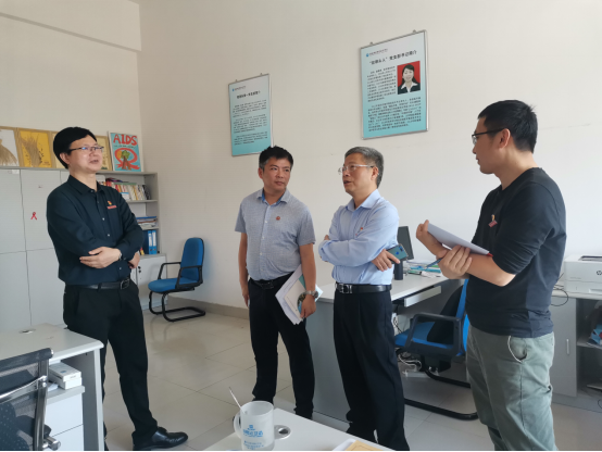 陈贞健长了解了“双带头人”工作室的建设进展,并对工作室的建设提出了意见和建议,包括制定工作计划表,工作制度,党建与业务融合,项目驱动党建等方面进行了深入交流,希望“双带头人”工作室能够立足自身健康促进特点,积极立项人群健康服务实践项目,在健康服务工作中积极探索实践育人模式,同时,切实提高支部书记开展党建工作的能力和本领,不断提升党建工作能力,推动党建工作高质量开展。