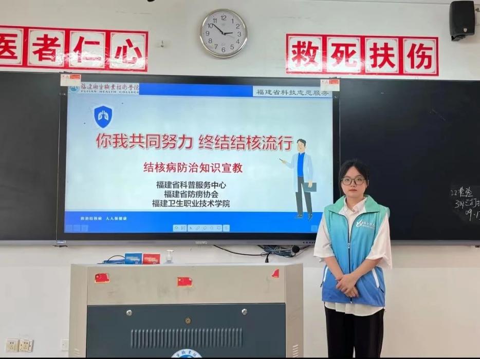 结核病是经呼吸道传播的慢性传染病,严重危害人民健康,已成为重大的公共卫生问题和社会问题。由于学生学业压力大、锻炼少、睡眠不足、学校是人群高度集等原因,学生成为了结核病的高发人群。为了提高学生对于结核病的防治能力,服务学校的结核病防治工作,9月14日,健康管理系第一党支部教师党员及预防医学专业学生志愿者为福建卫生职业技术学院23级新生开展结核病防治志宣传主题党日活动。