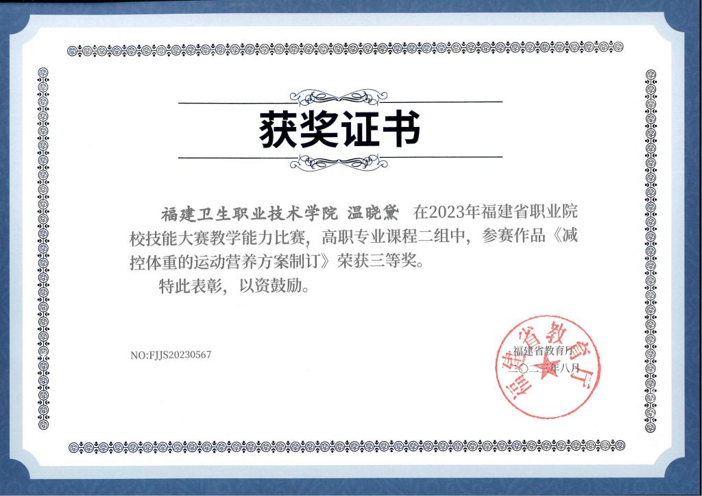 学院以现代大健康产业为核心,构建了专业群体系,并深入挖掘各专业的内在价值,塑造了“尚美行健、塑德启智”的文化特色。学院创新性提出“三色光”建设工程,以党建创新和队伍建设为着力点,深化“红色”精神引领铸魂工程;以专业提升和成果培育为发力点,推进“绿色”守正创新融合工程;以人才培养和事业发展为落脚点,打造“蓝色”整合优化发展工程。近年来,学生荣获全国职业院校技能大赛高职组健身指导比赛团体三等奖、全国大学生计算机应用能力与信息素养大赛一等奖、“挑战杯”福建省创业计划竞赛银奖、全国美容产教融合职业技能大赛二等奖、海峡两岸暨港澳大学生职业技能大赛社群健康助理员三等奖、福建省职业院校技能大赛高职组健康与社会照护二等奖,“筑梦健康”实践队入选乡村振兴“笃行计划”专项行动全国示范性团队等。