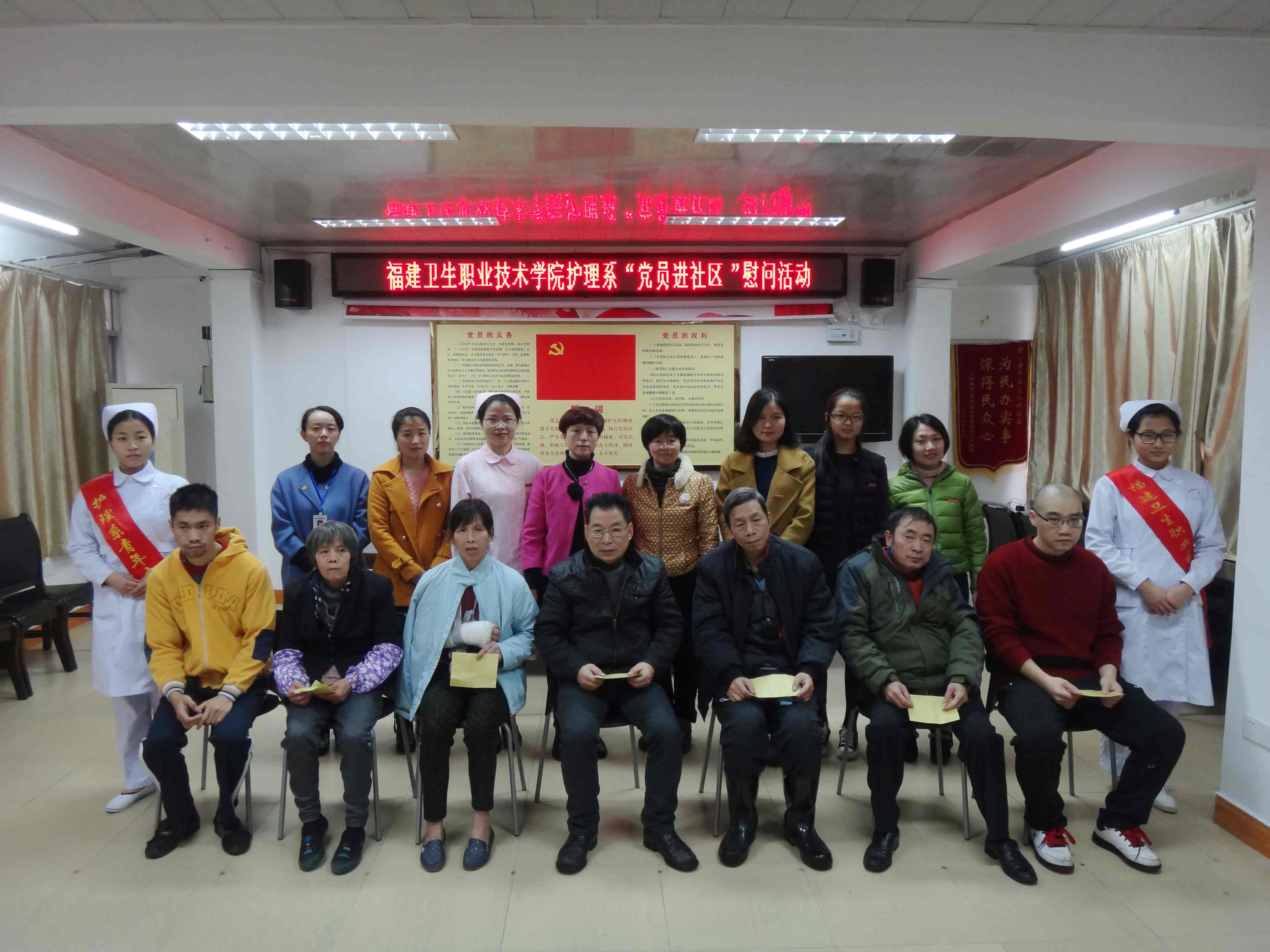 为贯彻落实党的群众路线教育实践活动,护理系党总支谢涛书记带领着部分党员,于2015年12月25日上午,到共建单位福州市洋中街道玉树社区开展了党员进社区活动。