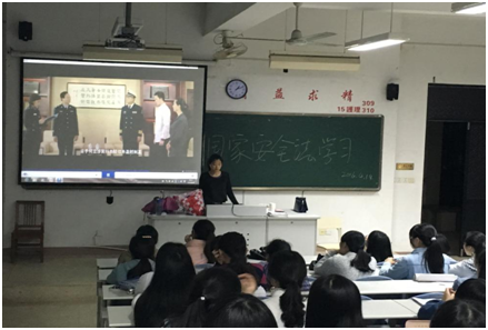 各班辅导员利用晚自习时间,专门组织班级同学学习《中华人民共和国国家安全法》、《中华人民共和国反间谍法》等相关法律基础知识,并结合案例剖析、图片展示、微视频播放等多种学习形式,以增强同学们的国家安全意识。