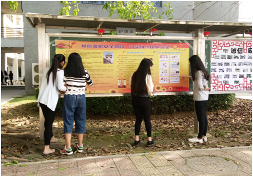 除了利用教师例会、学生主题班会等宣传学习形式外,护理系党总支还充分以宣传栏、宣传标语的形式,以“《国家安全法》的解读、我国有关国家安全的立法以及公民与组织维护国家安全的义务和权力等”为主要内容,向师生宣传国家安全法的基础知识,并努力增强师生关于“国家安全,人人有责”的观念。