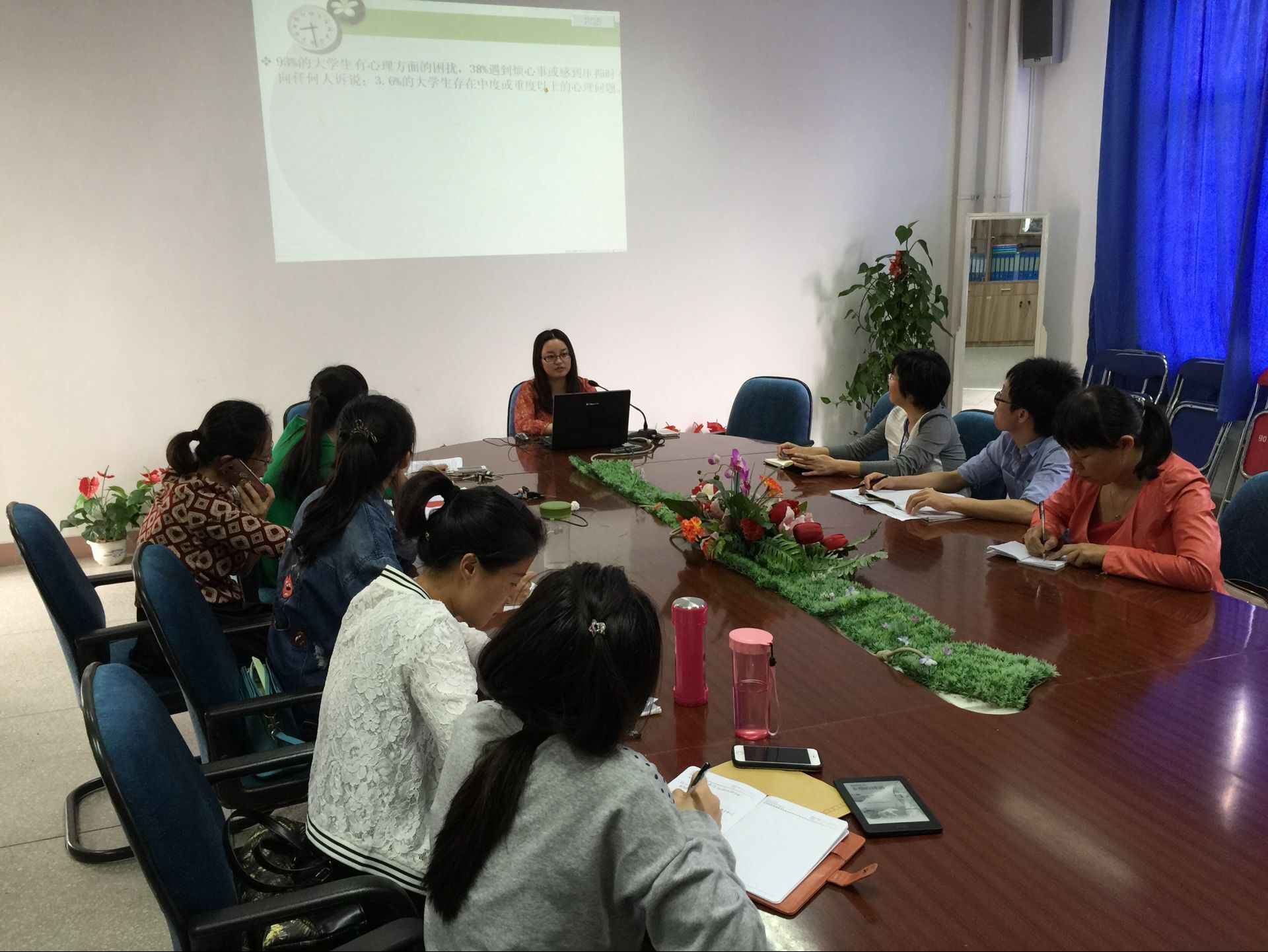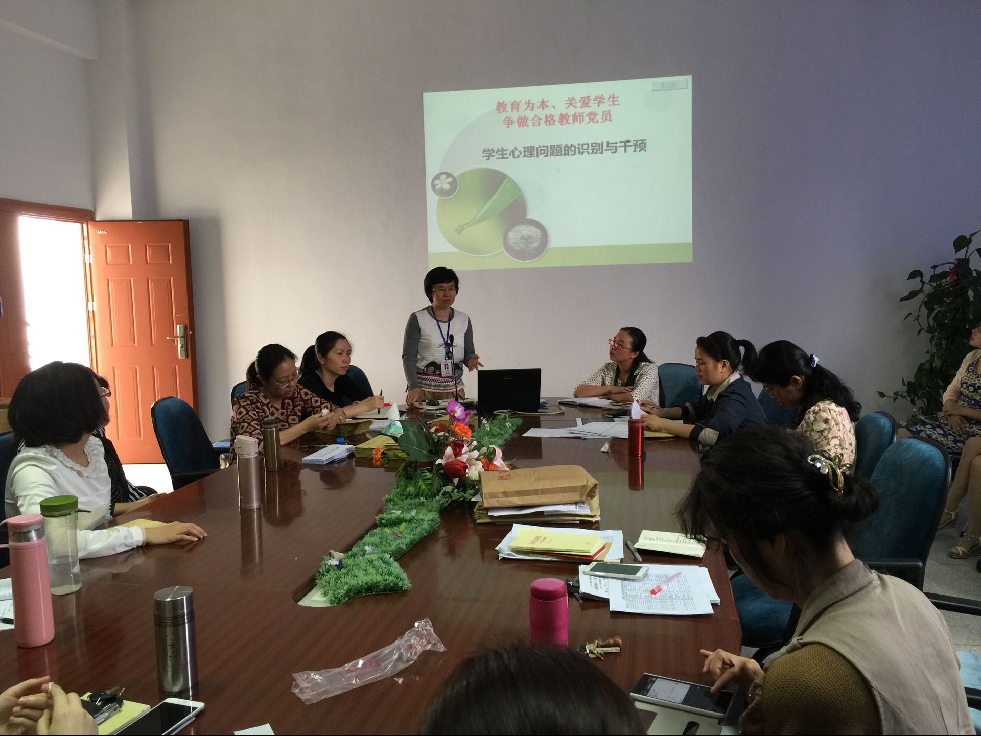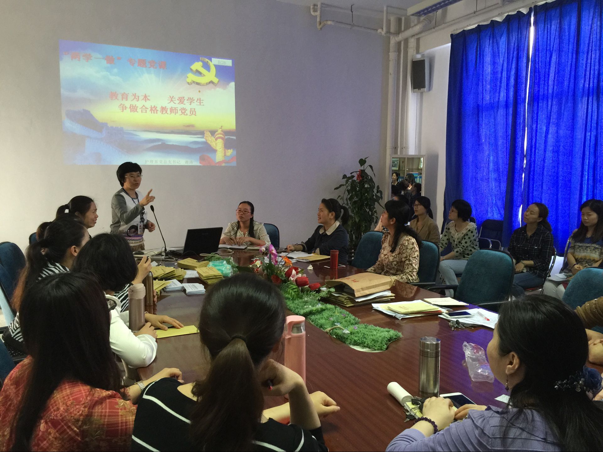 2016年5月17日下午,护理系党总支开展了“两学一做”学习专题党课。总支书记谢涛授课,以“‘教育为本,关爱学生;争做合格教师党员’——学生的心理问题识别和干预”为主题,对全系教师党员进行了专题教育辅导。