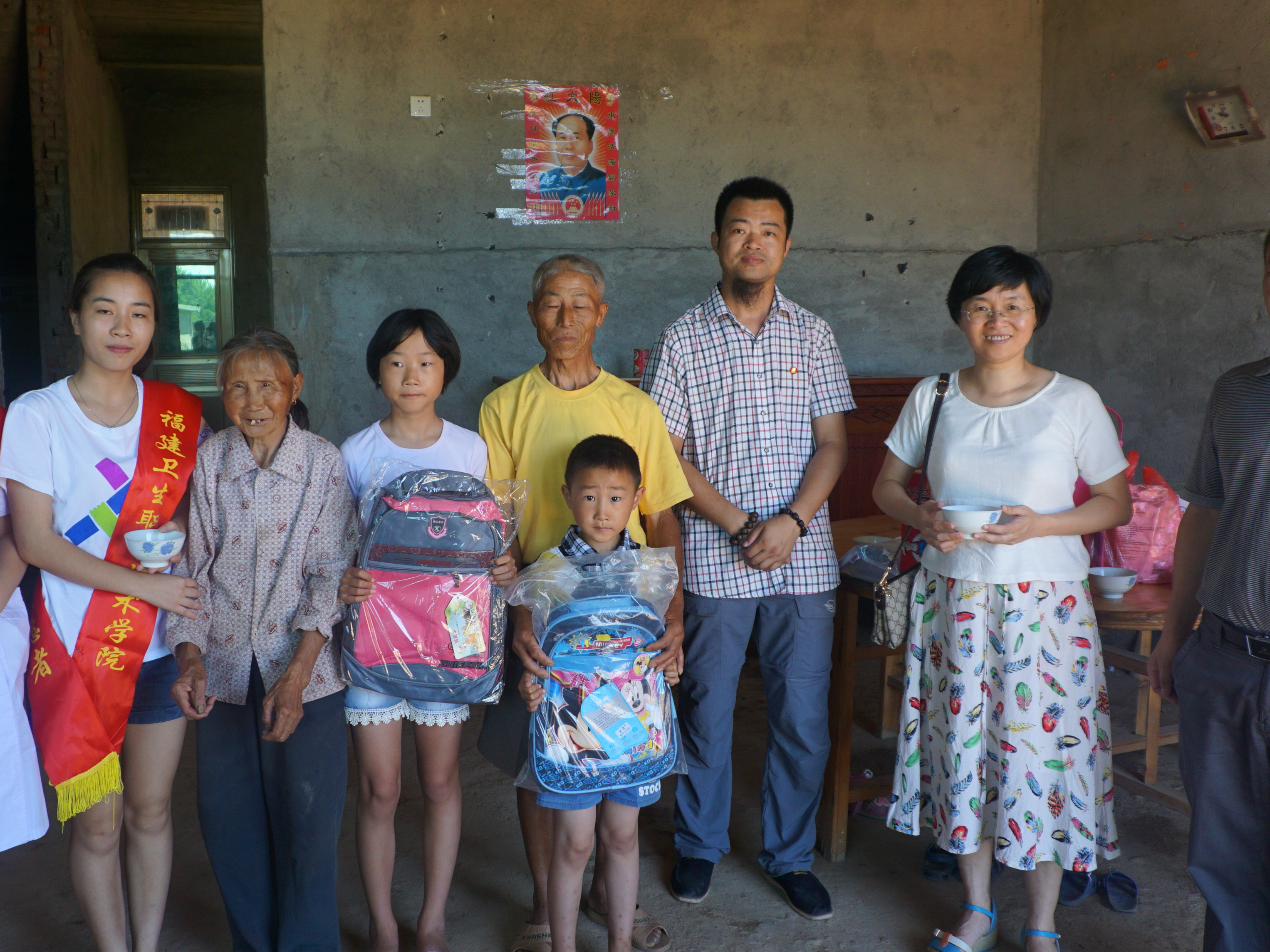 为庆祝中国共产党成立95周年,扎实开展“两学一做”学习教育。2016年7月7日,护理系党总支谢涛书记、郑梅钦老师、江丽娜老师携部分学生入党积极分子在福建蚂蚁力量爱心联合会会长杨贞凯、三明市宁化县河龙村村干部的陪同下,对当地部分低保户等生活困难群众进行慰问帮扶。