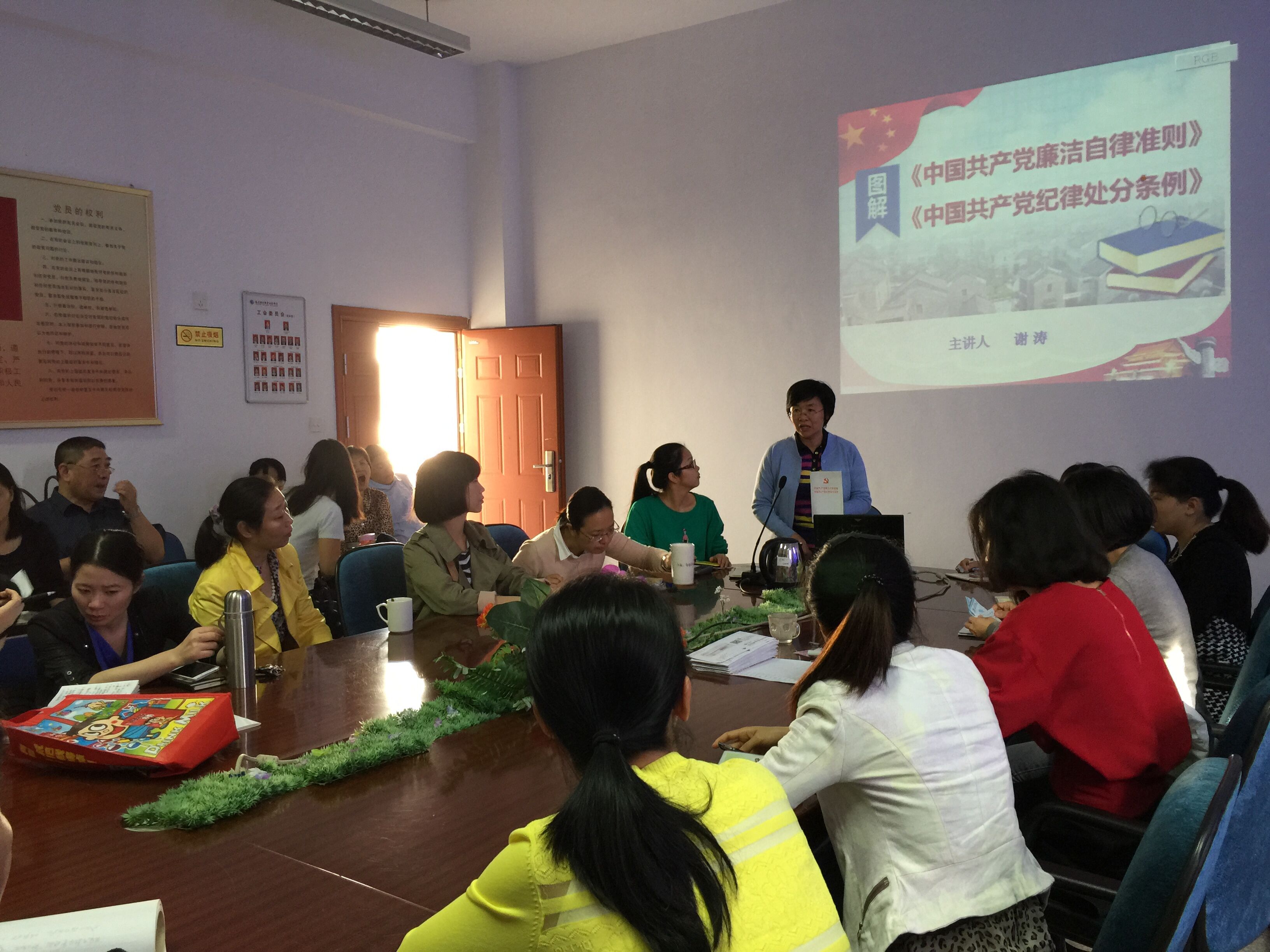 2015年12月1日中午,护理系党总支在会议室召开了《中国共产党廉洁自律准则》纪律处分条例学习会,党总支全体党员参加了会议。会上,护理系党总支谢涛书记解读了《中国共产党廉洁自律准则》纪律处分条例。在解读的过程中,谢涛书记还根据《准则》、《条例》内容,突出强调了政治纪律、政治规矩和组织纪律,要求全体党员牢固树立党章党规党纪意识,深刻认识到周永康、薄熙来、徐才厚、令计划、郭伯雄等严重违反政治纪律、损害党的事业的危害性,坚定不移推进党风廉政建设和反腐败斗争,狠抓落实中央八项规定精神,做到守纪律、讲规矩、知敬畏、存戒惧,自觉在廉洁自律上追求高标准,在严守党纪上远离违纪红线。
