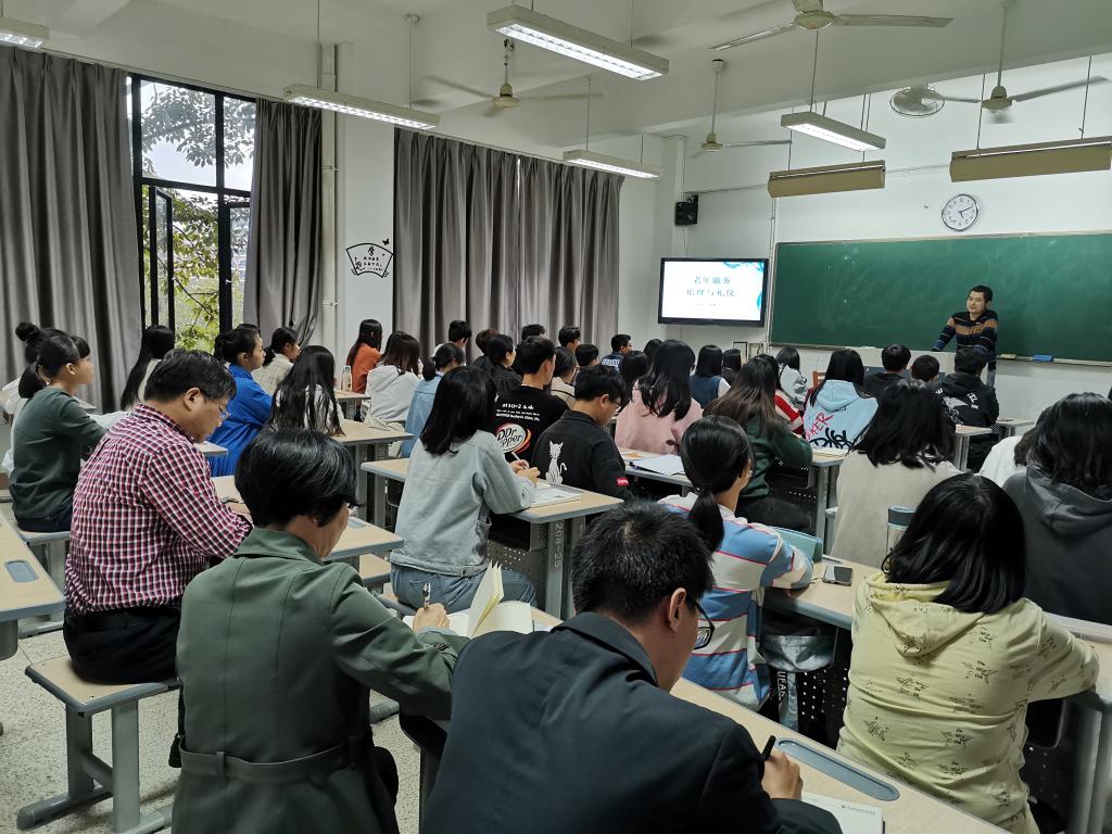 为推动“不忘初心、牢记使命”主题教育不断往深里走、往实里走。10月30日,学院领导苏友新院长深入护理系2019级老年保健与管理301班开展听课活动,并聚焦老年保健与管理专业师生最关心、最直接、最现实的问题开展调查研究。护理系党总支谢涛书记、林桂松副书记,老年保健与管理专业负责人李淼淼副教授以及辅导员李庆老师一同参加课听课和调研活动。