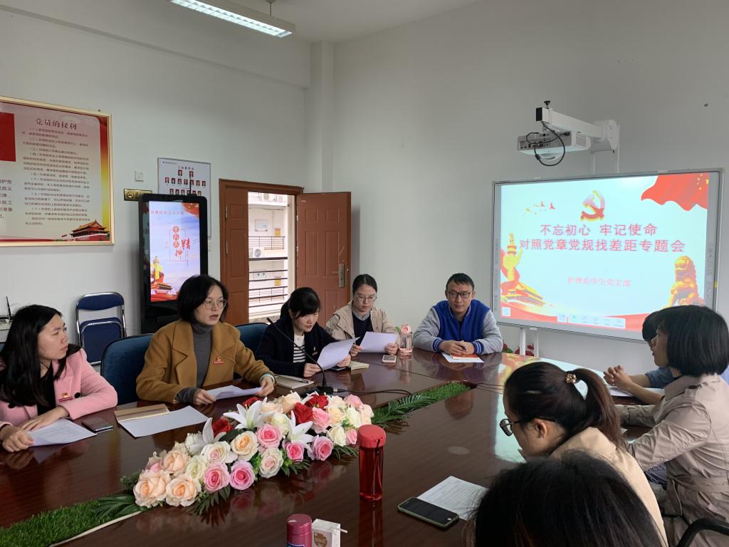 按照学院“不忘初心、牢记使命”主题教育工作安排,11月28日,护理系学生党支部召开对照党章党规找差距专题会议,会议由支部书记许慧琼同志主持,支部全体党员参加会议。