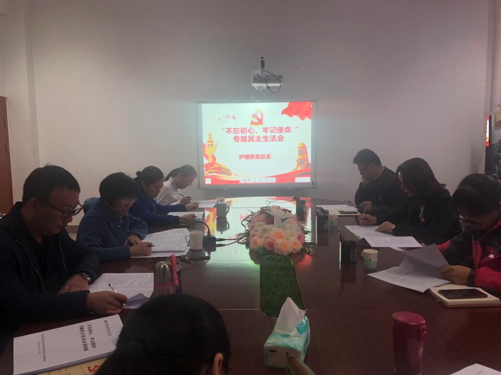 根据习近平总书记关于“不忘初心、牢记使命”主题教育重要讲话和重要批示精神,按照《关于第二批主题教育单位开好“不忘初心、牢记使命”专题民主生活会的通知》(闽教组[2019]29号)和《关于印发“不忘初心、牢记使命”专题民主生活会实施方案的通知》(闽教组[2019]39号)等文件要求,护理系党总支于2019年12月5日在护理系301会议室开展“不忘初心、牢记使命”专题民主生活会。护理系党总支委员参加本次会议。学院第三巡回指导小组成员院党委副书记李美华同志、管理系党总支书记艾松军同志、组织员张云霞同志出席会议。本次会议由护理系党总支书记谢涛主持。