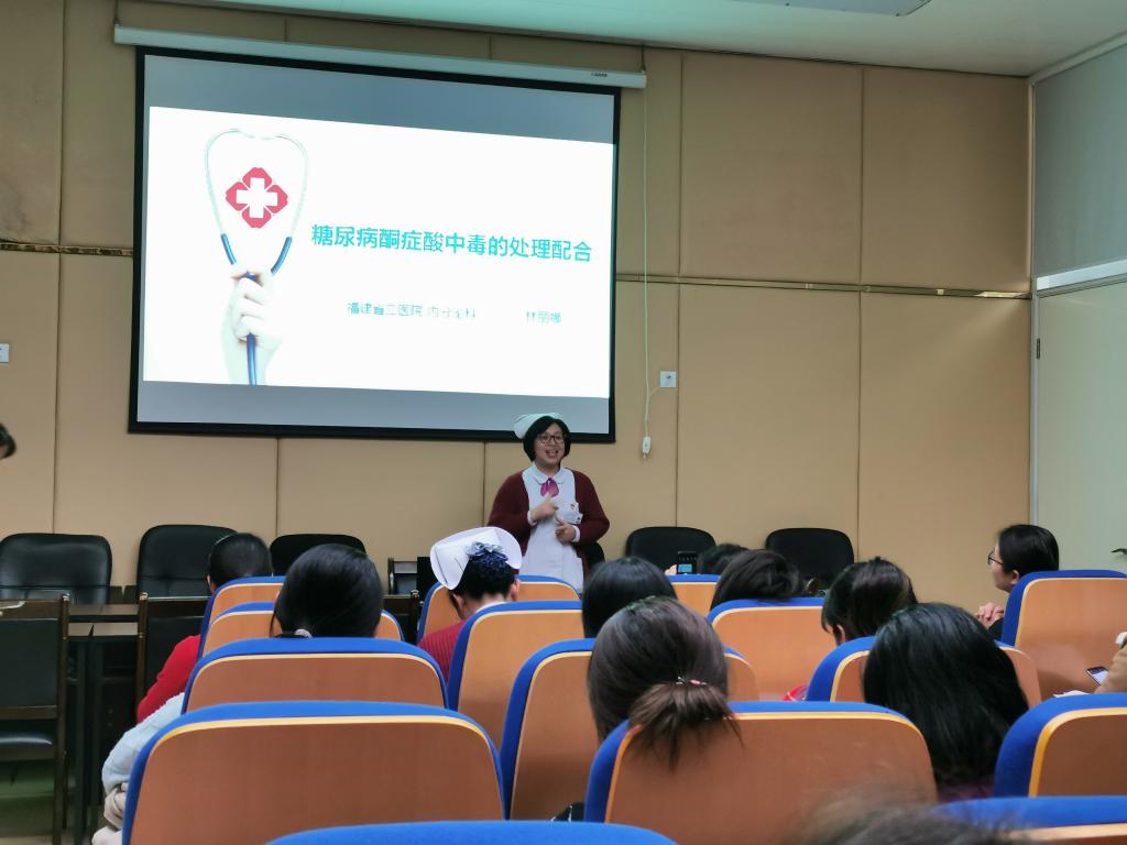 参加本次会议的有福建省立医院护理部党支部、福建省立金山南院各内科党支部、福建省肿瘤医院各内科党支部的党员及福建省立医院护理部金爽主任、各教学医院的内科护理教学骨干教师及我校护理系内科护理教研室全体教师。会议首先进行了《健康评估》的课程思政建设、专业课程教学融合人文素质教育的实践、《健康评估》校企合作课程的研发、信息化课堂的设计及教学实践、《健康评估》病例分析实训课设计与实践五个主题汇报;之后福建省立医院内分泌科党支部教师展示了一堂精彩的“糖尿病酮症酸中毒患者护理”的示范课。最后,全体教师针对《健康评估》校企合作开发课程的课程标准、技能及评分标准等方面建设展开了研讨。