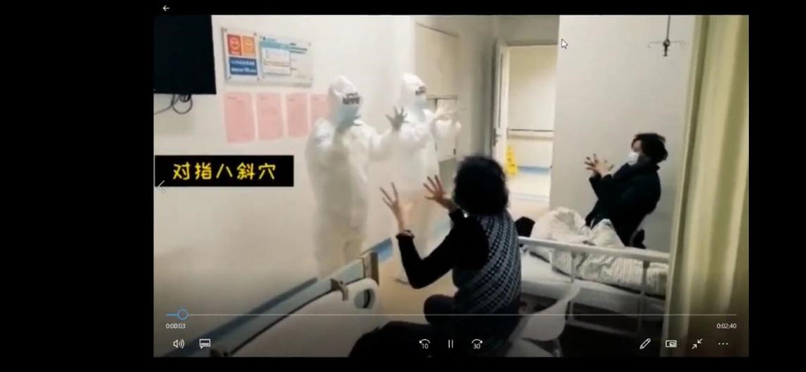 课程一开始,危艳萍老师为大家播放一段视频“一、二、三,吸气……”“记住,有个要点,吸三秒,呼六秒……”,视频中是危艳萍老师在指导新冠肺炎病人做呼吸操。教病人做呼吸操,并不在援鄂医疗队对新冠肺炎病人的护理职责范围之内,但是作为一名专业护士,一位热爱护理事业的白衣天使,危艳萍老师觉得,只要对患者康复有益,做什么都可以,教病人做呼吸操,在防护服背后写心灵鸡汤,使用精油为病人安眠,组员为病人手绘64幅加油小插画,这些精神上的慰藉有效的拉近了医护人员与病人之间的距离,只为让病人心情愉快,更快的战胜病魔。
